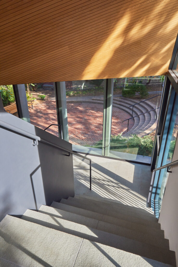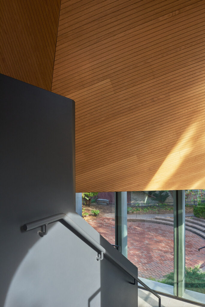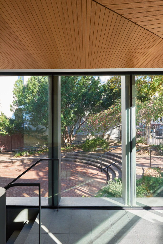 The new extension provides the church with universal accessibility for the first time while linking the sanctuary to an adjacent garden and multi-purpose areas in the lower levels. The entry and circulation utilize a broad definition of accessibility, facilitating users of all sizes, ages, and abilities to better gain access across the building and adjacent exterior spaces.