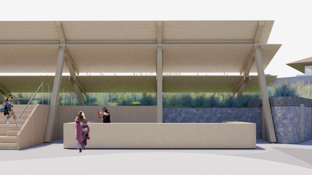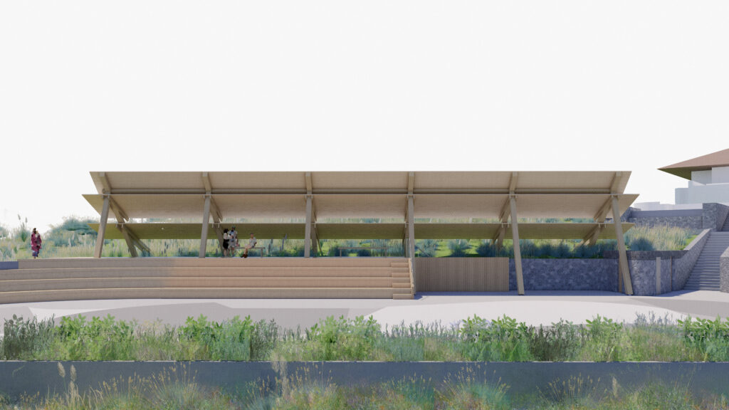 FE has been commissioned to design a dance theater at the edge of a meadow on the site of a neglected tennis court. The mass timber canopy that shades the audience and performers will also support a photovoltaic array that creates more electricity than required for the modest needs of the performance space.