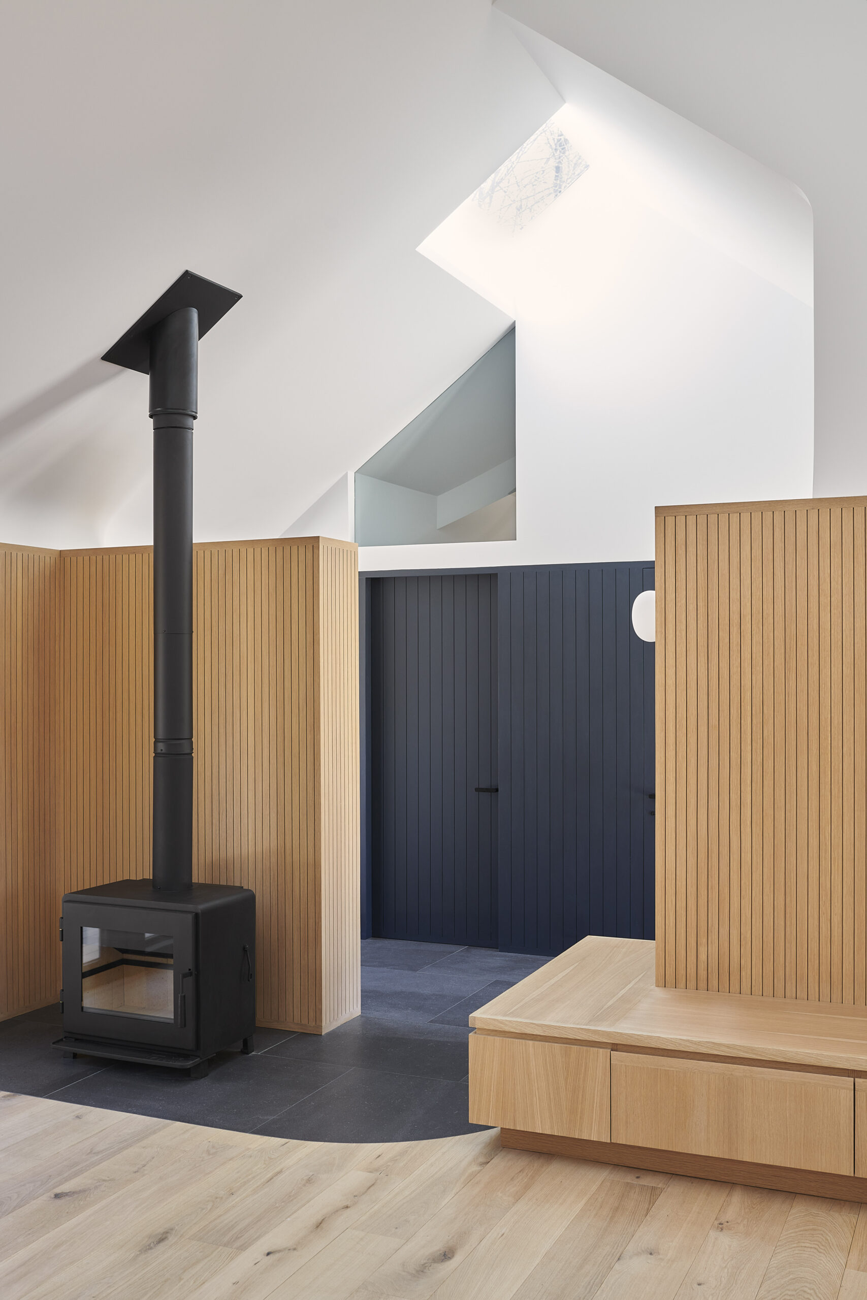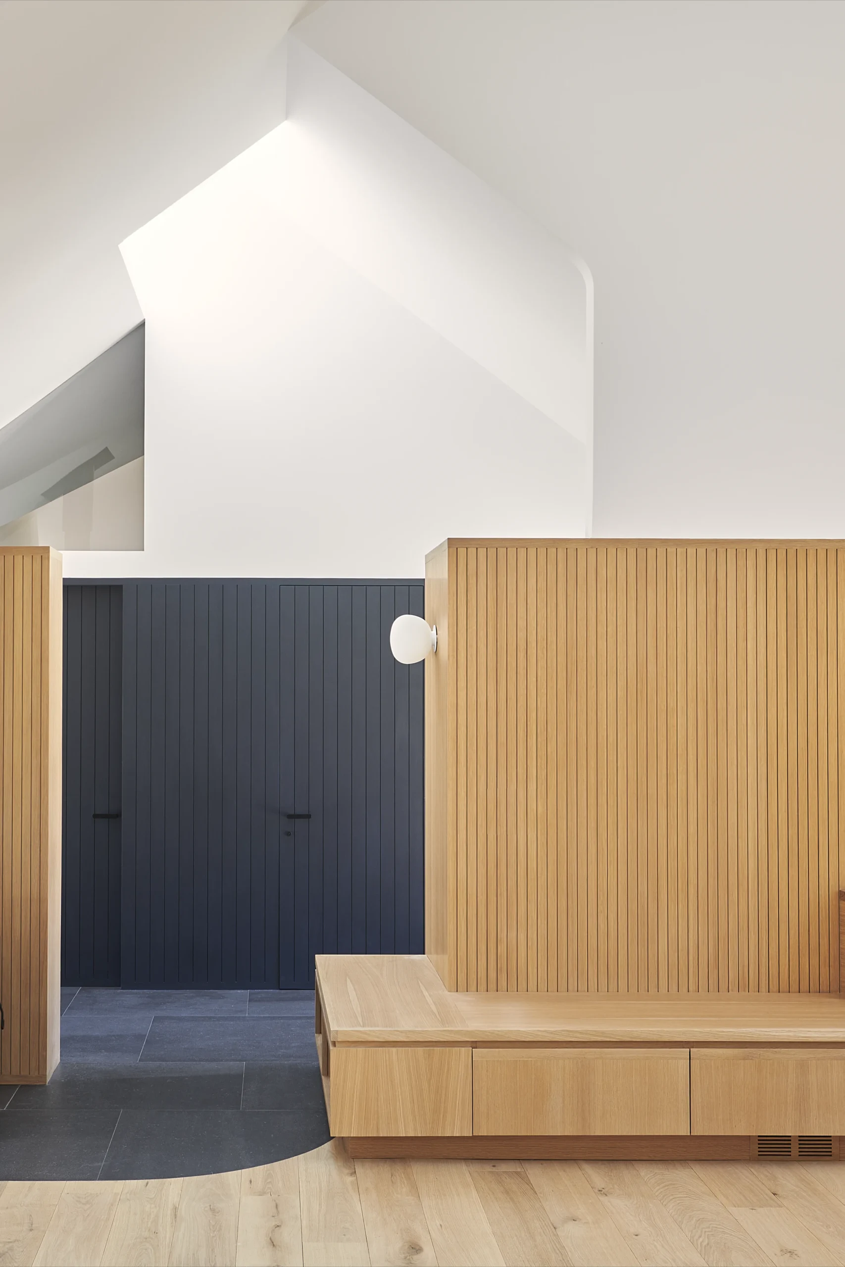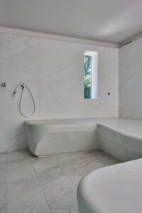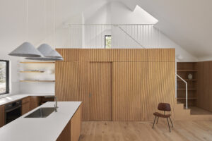 A young gallerist purchased a 1970’s house in suburban Long Island with the goal of creating a mix of social spaces, areas for displaying art, and places for living. Our interior and exterior renovations riff on the restraint of the original palette while making space for new uses.